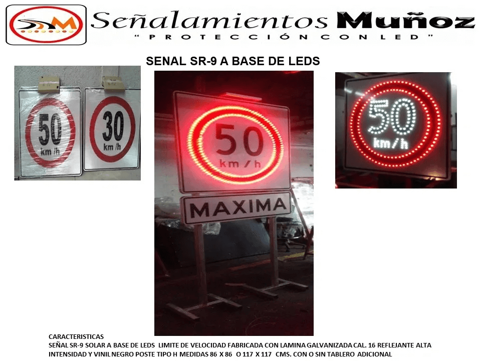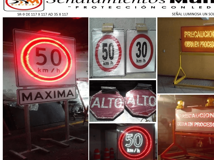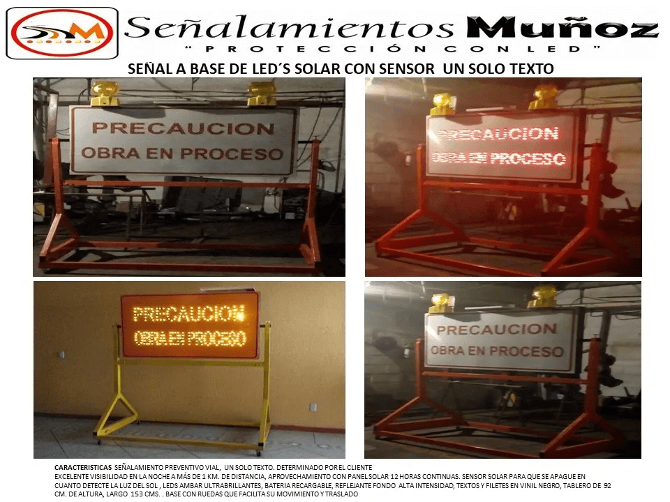 Señalización innovadora como señal a base de LED y señal a base de LED’s solar con sensor, para advertencia efectiva en zonas de alto riesgo.