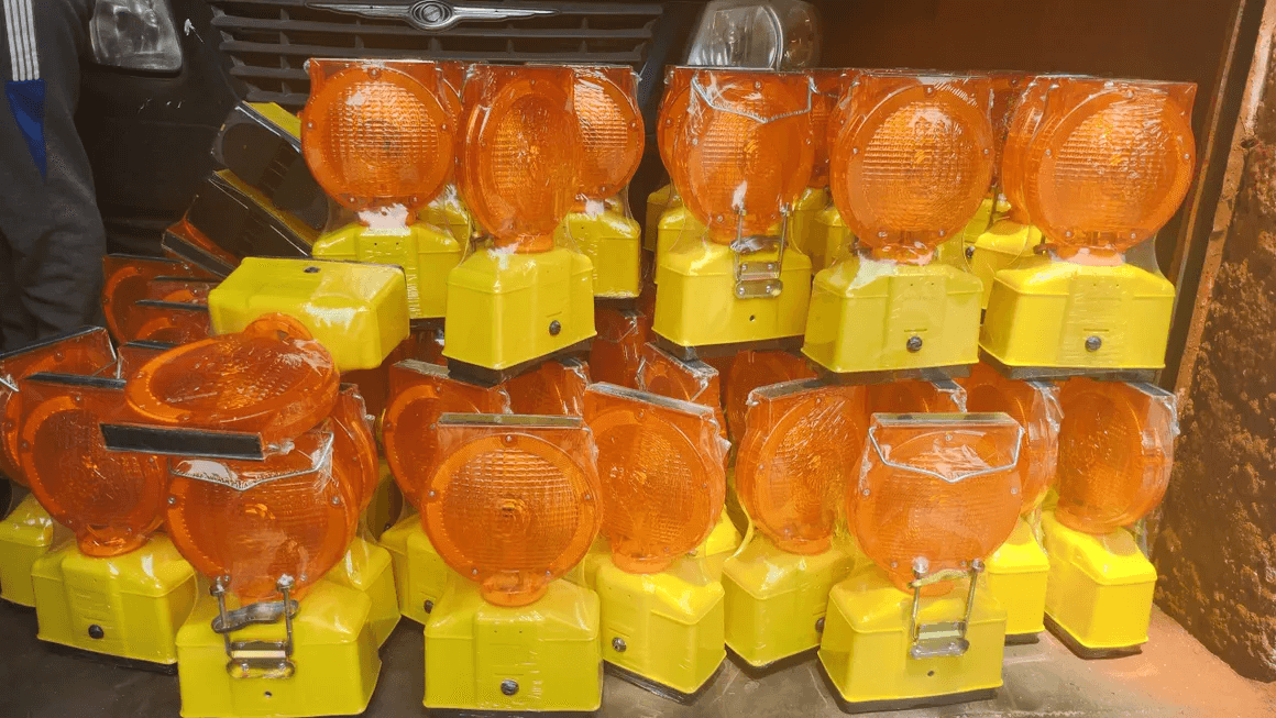 Trafitambo y trafitambo luminoso solar, esenciales para delimitar zonas de riesgo en obra.